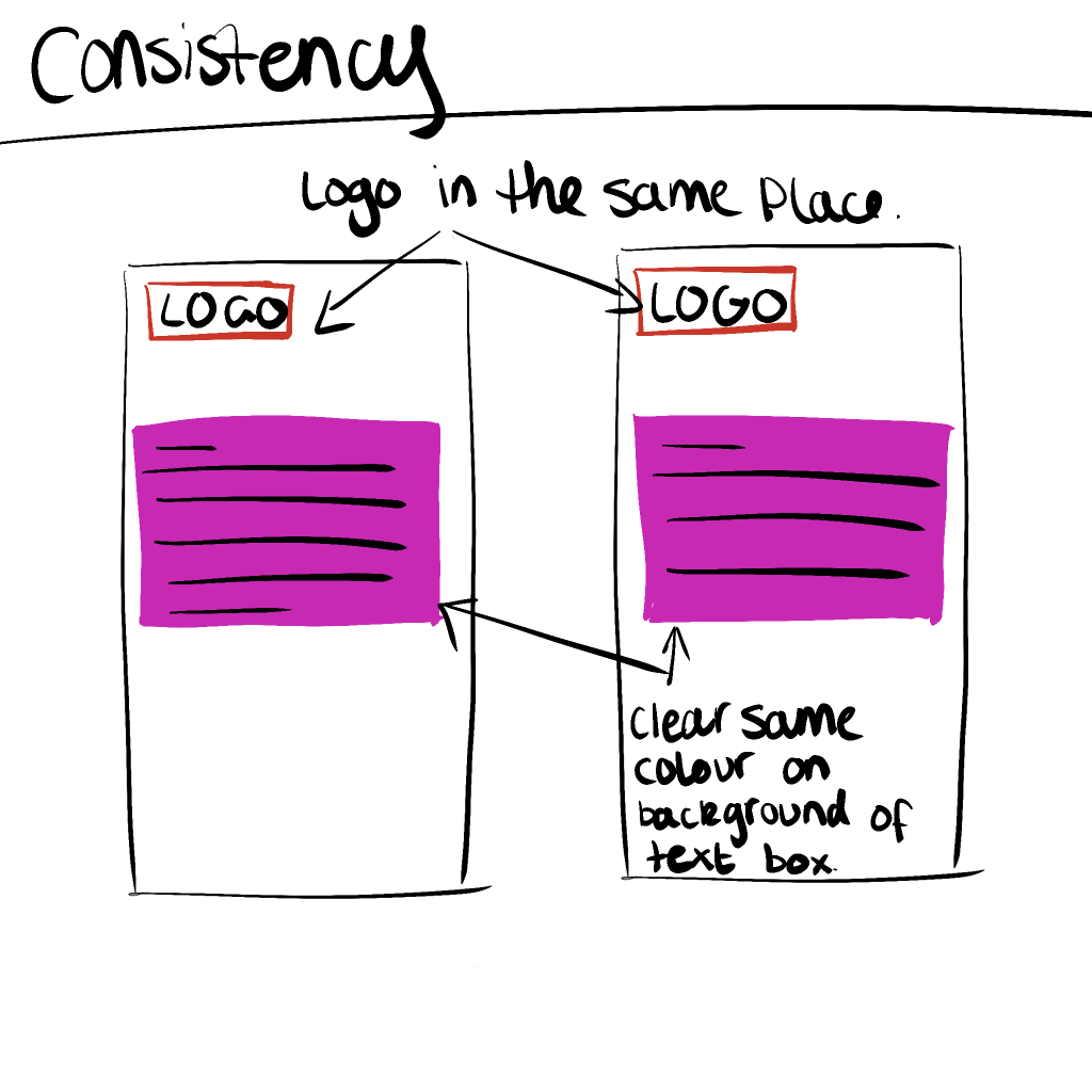 Using consistency within the designs, such as having the dropdown menu in the same place on each page, will make it so users are not confused and annoyed with their experience when using both the app and website.